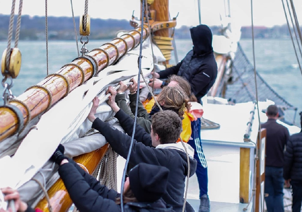 De unge vil udover sejlads deltage i oprigning, ned rigning, klargøring og vedligeholdelse af skibet.